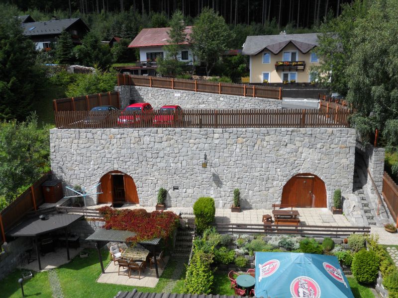 Apartmán 2+2 s vlastní kuchyňkou a jídelnou. Všechny pokoje jsou vybaveny TV a sociálním zařízením. V prvním patře se nachází 3 dvoulůžkové pokoje, pro které je k dispozici velká plně vybavená kuchyň. V přízemí jsou 2 pokoje s vlastním kuchyňkou a sociálním zařízením. V teplých měsících je k dispozici krásné posezení na zahradě včetně opékání, ohniště. Zabezpečené parkoviště pro naše hosty v ceně ubytování. WIFI k dispozici zdarma.