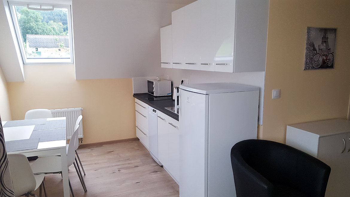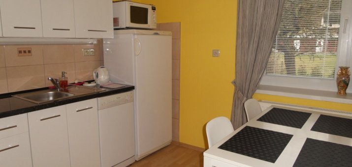 Apartmá Helga se nachází v 1. patře domu a je ideální pro 2 osoby. Nabízí ložnici s manželskou postelí, kuchyňský kout (mikrovlnka, varná deska, lednice, myčka, varná konvice, nádobí), koupelnu s vanou a WC, TV, Wi-Fi a plynové vytápění. K dispozici je také balkon nebo terasa k posezení, parkování v oplocené zahradě. Apartmán je nekuřácký, kouření je možné na balkoně nebo venku. Po dohodě lze ubytovat i domácí zvíře za poplatek.