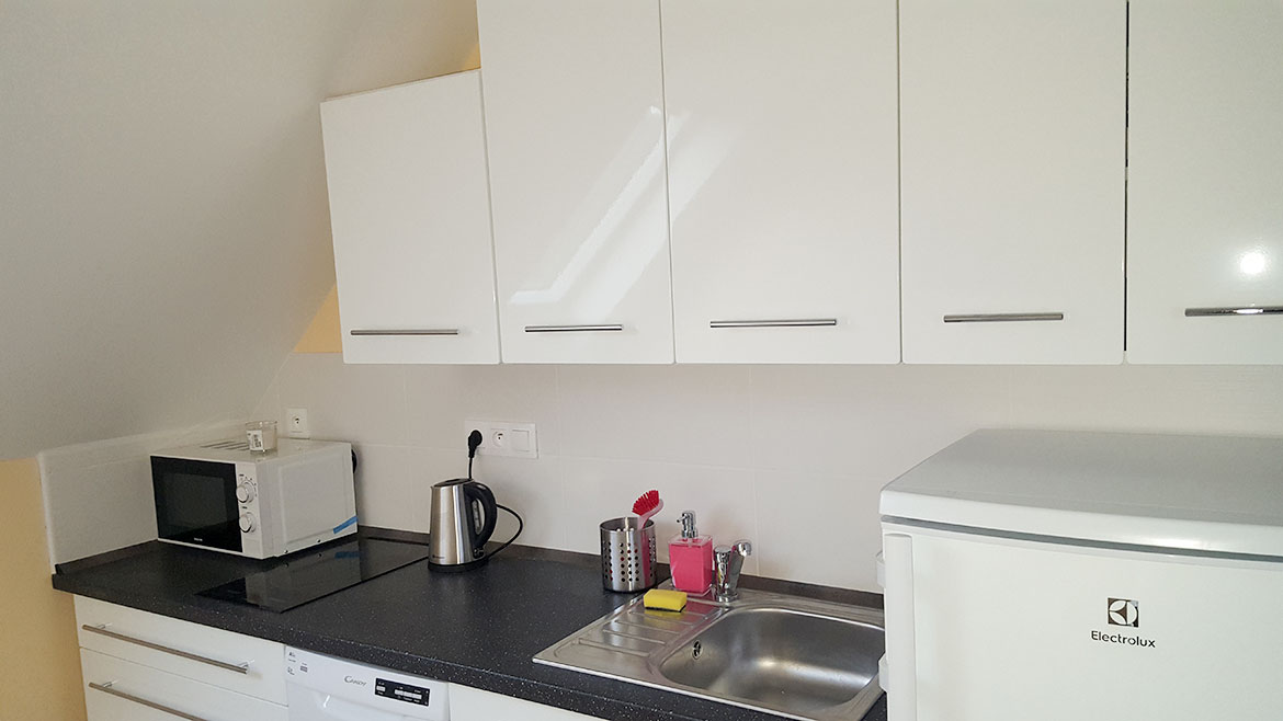 Každý apartmán disponuje jednou či více ložnicemi (dle kapacity), vlastní koupelnou s WC a plně vybavenou kuchyňkou – nechybí sklokeramická varná deska, mikrovlnná trouba, lednice, myčka nádobí, rychlovarná konvice a potřebné nádobí.