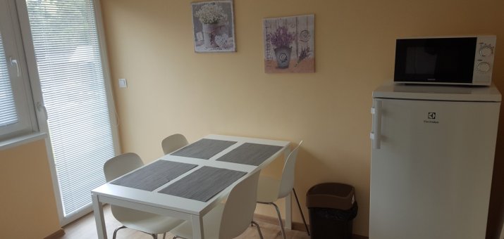 Apartmá Andělka je nově zrekonstruované ubytování v 1. patře domu, vhodné pro 2–4 osoby (ideálně rodinu s dětmi). K dispozici je ložnice s manželskou postelí, samostatné lůžko s přistýlkou, kuchyňka (mikrovlnka, varná deska, lednice, myčka, varná konvice, nádobí), koupelna s vanou a WC, TV, Wi-Fi a plynové vytápění. Hosté mohou využít posezení na balkoně nebo terase, parkování v oplocené zahradě. Kouření je povoleno pouze venku nebo na balkoně. Domácí mazlíčci jsou vítáni po dohodě a za poplatek.