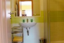 V dolní části najdete předsíň, koupelnu, vybavenou kuchyňku s kuchyňským stolem a posezení u TV.