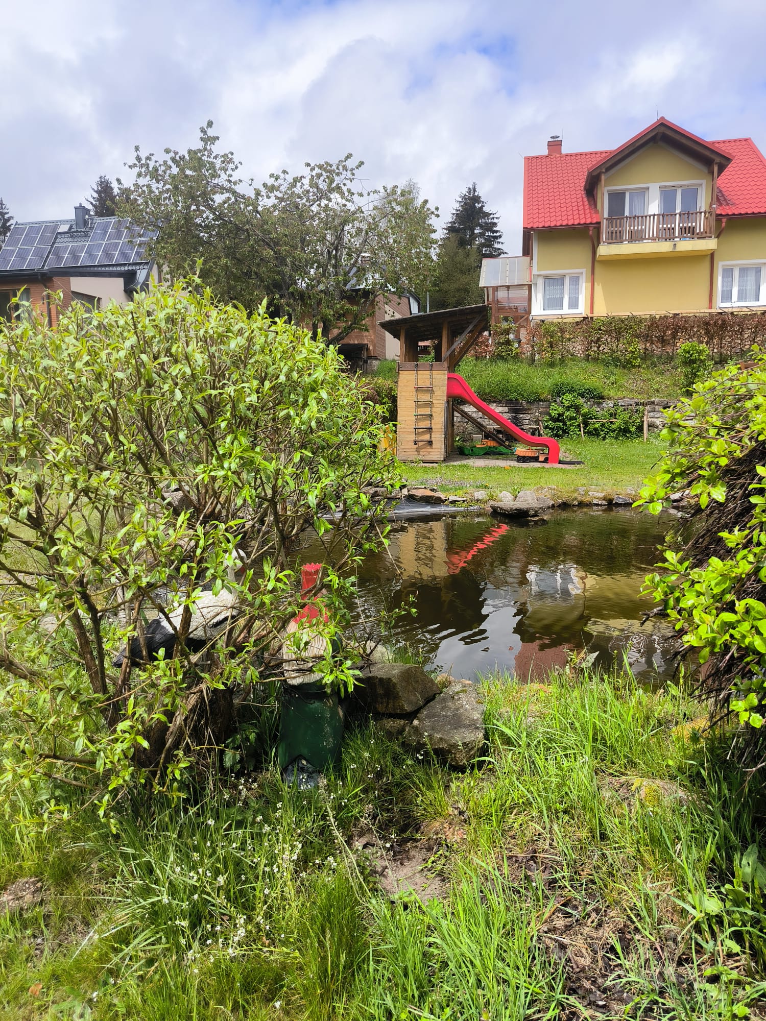 - Pro děti jsou k dispozici houpačky , dětský domeček se skluzavkou, veliká trampolína