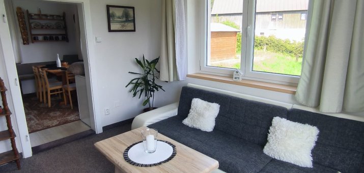 Parkování v létě přímo u chaty, v zimě přímo u chaty nebo na soukromém 150 m vzdáleném parkovišti pronajímatele.