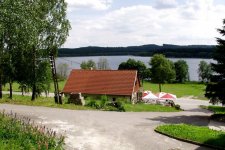 - Pro rybáře úschovna náčíní přímo u vody ve srubu.