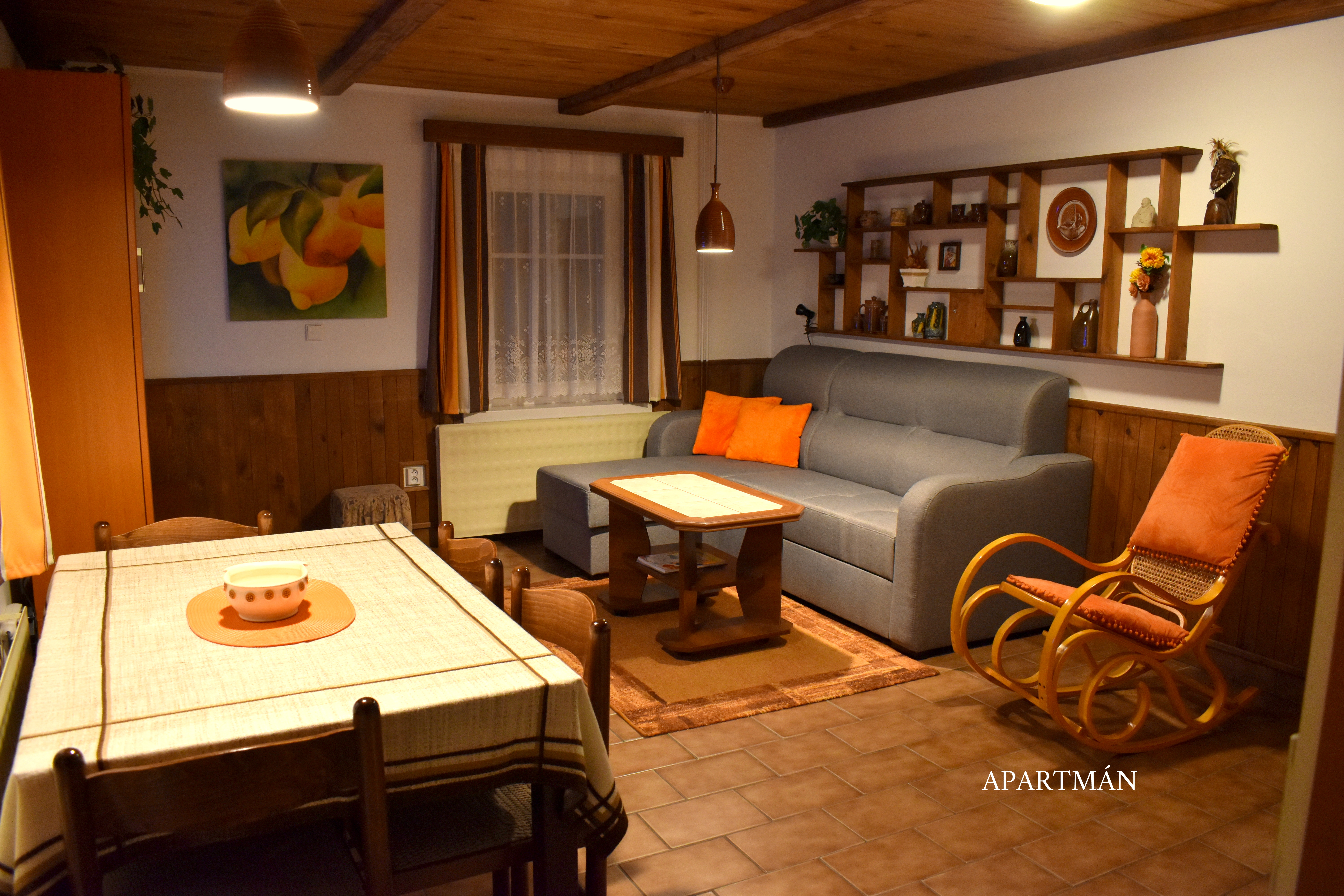 Objekt 1: Jedná se o apartmán, samostatný domeček pro 2 až 4 osoby. Hostům je k dispozici ložnice, obývací pokoj s krbem a TV, kuchyňka a sociální zařízení.